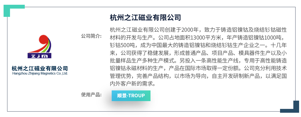 重重困扰让之江磁业管理层意识到了企业发展中暴露出的管理缺陷,甚至迫切的想通过一款优质的ERP管理软件来协助之江磁业优化,改善这些问题。在通过多家ERP产品的对比,考察等了解之后,终于在2012年6月份,之江磁业集体决策选择拥有20多年制造业行业经验的顺景软件作为合作伙伴,目标是改善之江磁业内部管理,让管理不在失控,让企业数据简易化、共享化、智能化。